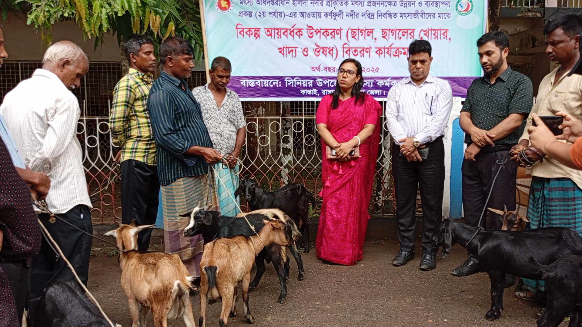 রাঙ্গামাটি কাপ্তাই উপজেলা সিনিয়র উপজেলা মৎস্য কর্মকর্তার কার্যালয় ( ২৯ মে) বৃহস্পতিবার বেলা ১১ টায় কাপ্তাই মৎস্যজীবি নিবন্ধিত ১০জন মৎস্যজীবিদের মাঝে দুইটি করে মোট ২০ টি ছাগল খোয়াড়,ঔষধ,ভিটামিন ও খাদ্য বিতরণ করা হয়েছে। মৎস্য অধিদপ্তরের আওতাধীন হালদা নদীর প্রাকৃতিক মৎস্য প্রজনন ক্ষেত্র উন্নয়ন ও ব্যবস্থাপনা প্রকল্প (২য় পর্যায়) এর আওতায় কর্ণফুলী নদীর মৎস্যজীবীদের মাঝে বিকল্প আয়বর্ধক উপকরণ হিসেবে এই ছাগল বিতরণ করা হয় বলে জানান কাপ্তাই উপজেলা সিনিয়র মৎস্য কর্মকর্তা শেখ মো. এরশাদ বিন শহীদ।